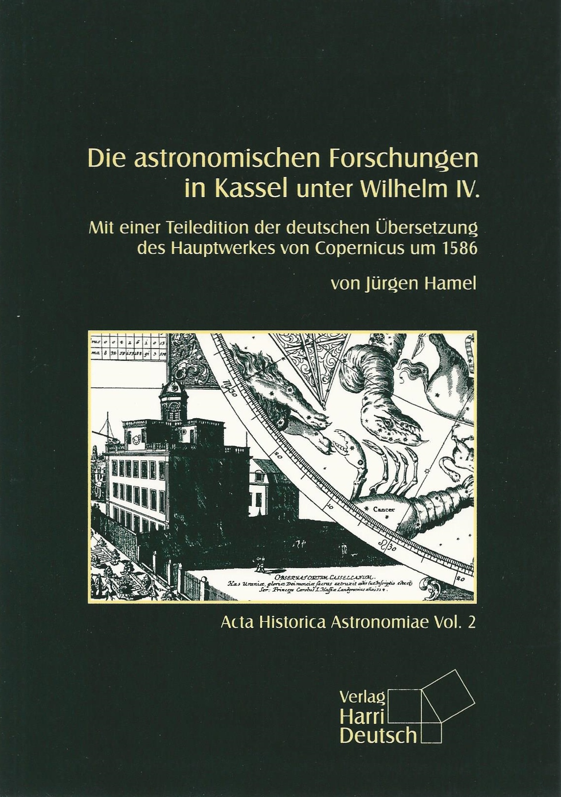 Hamel, Jürgen: Die astronomischen Forschungen in Kassel unter Wilhelm IV. Mit einer wissenschaftlichen Teiledition der Übersetzung des Hauptwerkes von Copernicus 1586. (Acta Historica Astronomiae ; 2). Thun ; Frankfurt am Main : Deutsch, 1998; 2., korr. Aufl. 2002, 175 S., ISBN 3-8171-1569-5 (1. Aufl.), 3-8171-1690-X (2. Aufl.), Abb., 15 x 21 cm, kartoniert EUR 14,80 / sFr 23,10.