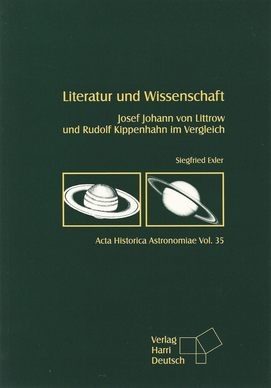 Exler, Siegfried: Literatur und Wissenschaft. Josef Johann von Littrow und Rudolf Kippenhahn im Vergleich (Acta Historica Astronomiae ; 35). Frankfurt am Main: Verlag Harry Deutsch, 2007, 108 S., ISBN 978-3-8171-1821-2, 23 Abb., 15 x 21 cm, Broschur EUR 12,80.