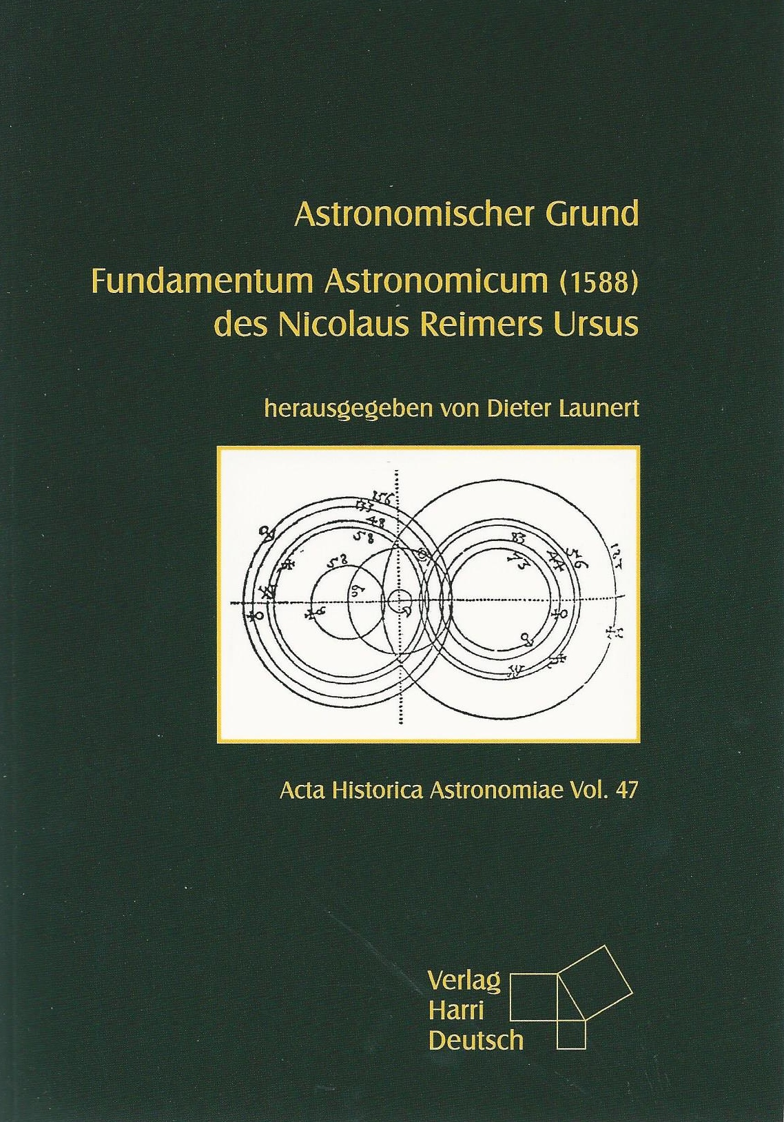Dieter Launert: Astronomischer Grund. Fundamentum Astronomicum 1588 des Nicolaus Reimers Ursus (Acta Historica Astronomiae ; 47). Frankfurt am Main: Verlag Harry Deutsch, 2012, 296 S., ISBN 978-3-8171-1896-0, 136 Abb., 15 x 21 cm, Broschur EUR 29,80.