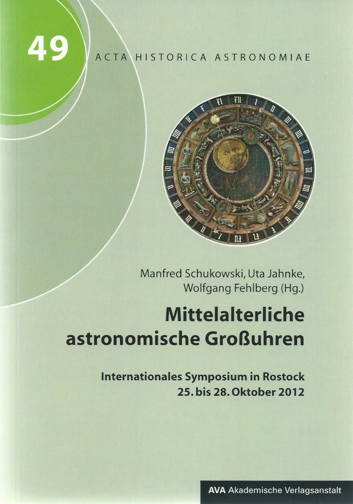 Manfred Schukowski, Uta Jahnke, Wolfgang Fehlberg (Hrsg.): Mittelalterliche astronomische Großuhren, Internationales Symposium in Rostock 25. bis 28. Oktober 2012 (Acta Historica Astronomiae ; 49). Leipzig: AVA - Akademische Verlagsanstalt, 2014, 415 S., ISBN 978-3-944913-40-7, zahlr. Abb., 15 x 21 cm, Broschur EUR 39,00.
